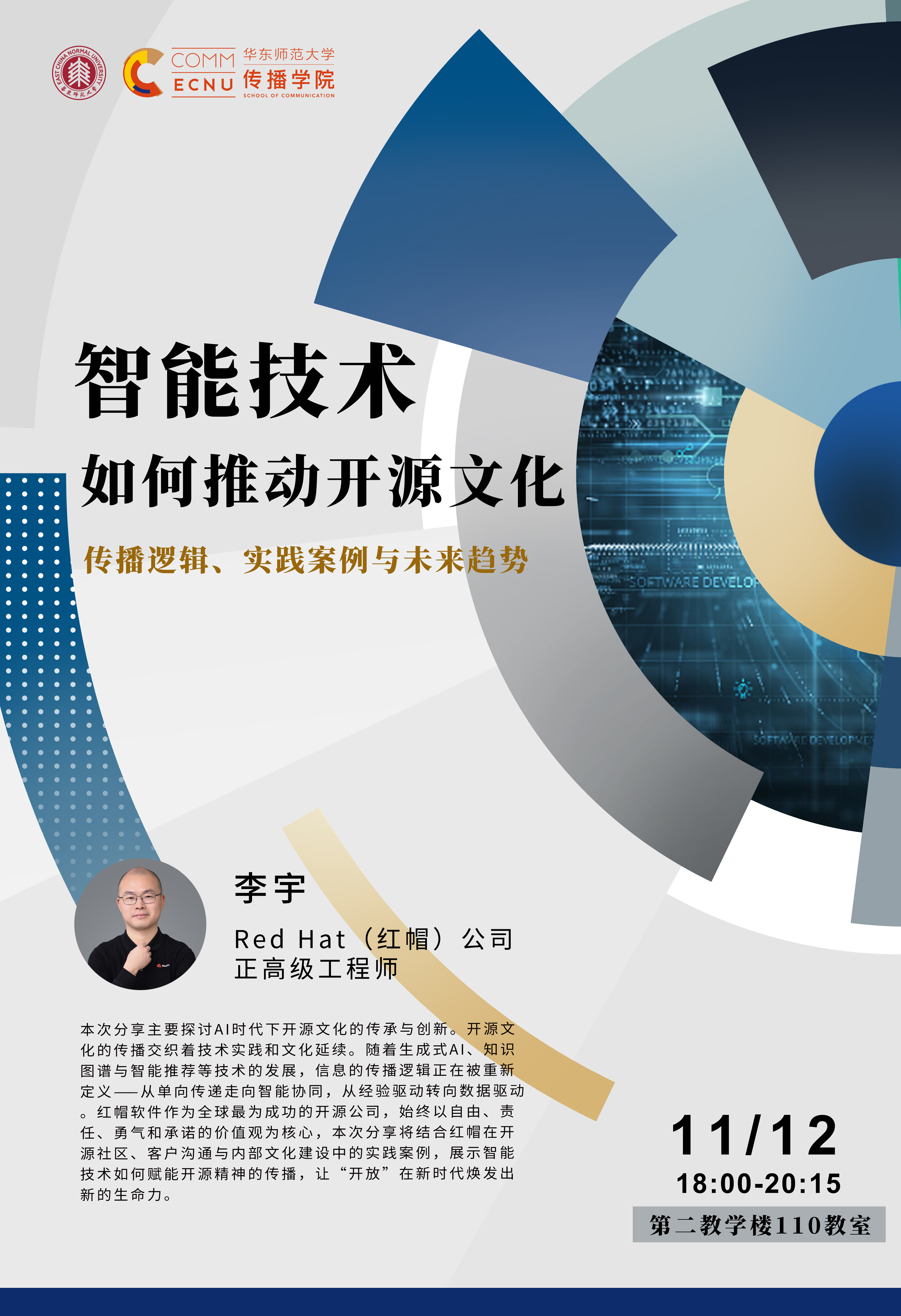 讲座预告 | 李宇:智能技术如何推动开源文化:传播逻辑、实践案例与未来趋势