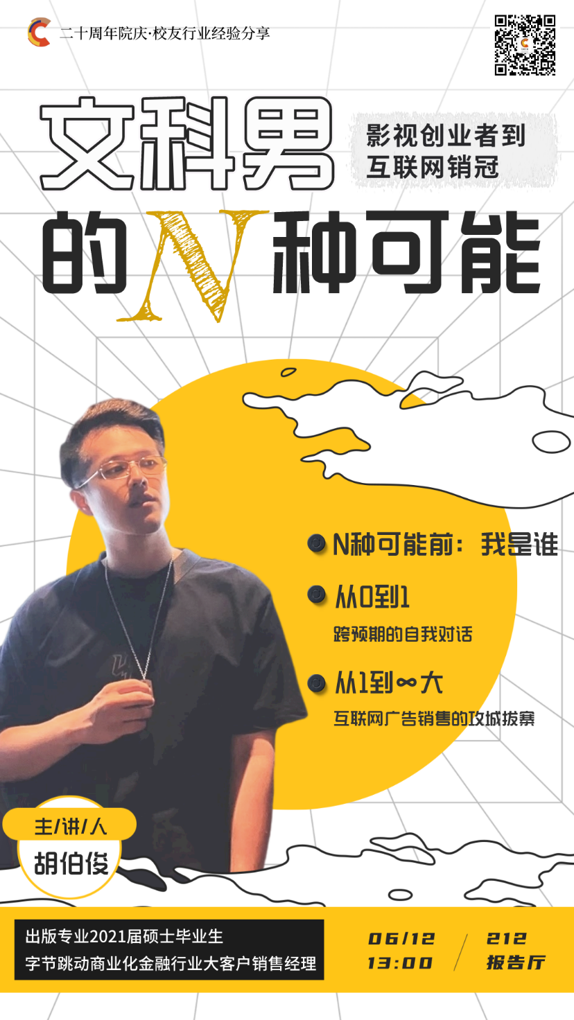 将迎来建院20周年。学院将邀请各行业资深校友返校,为在校同学分享各类公司、机构的一手工作经验。欢迎各位同学积极参与!