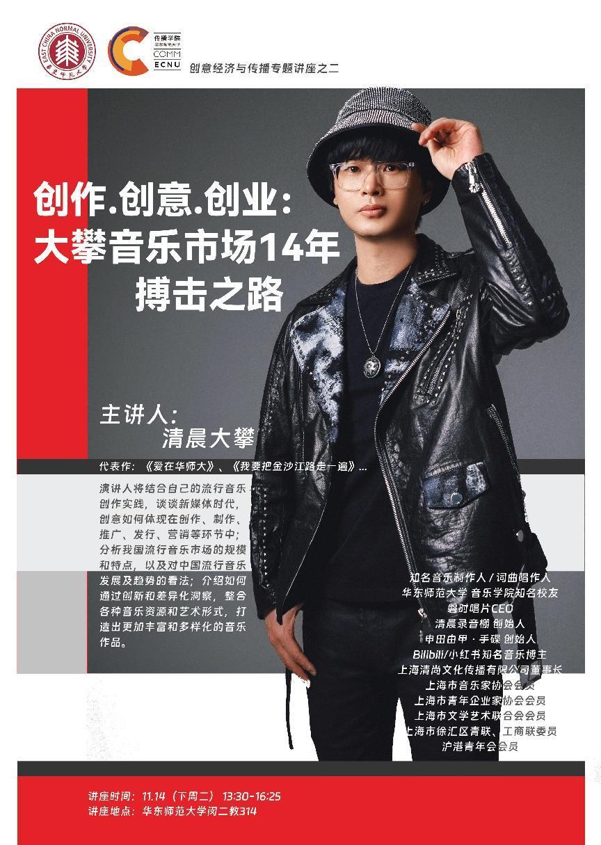 创意经济与传播专题讲座之二 | 清晨大攀:创作.创意.创业:大攀音乐市场14年搏击之路