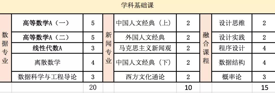 共45学分,联合打造“融合课程”15学分。