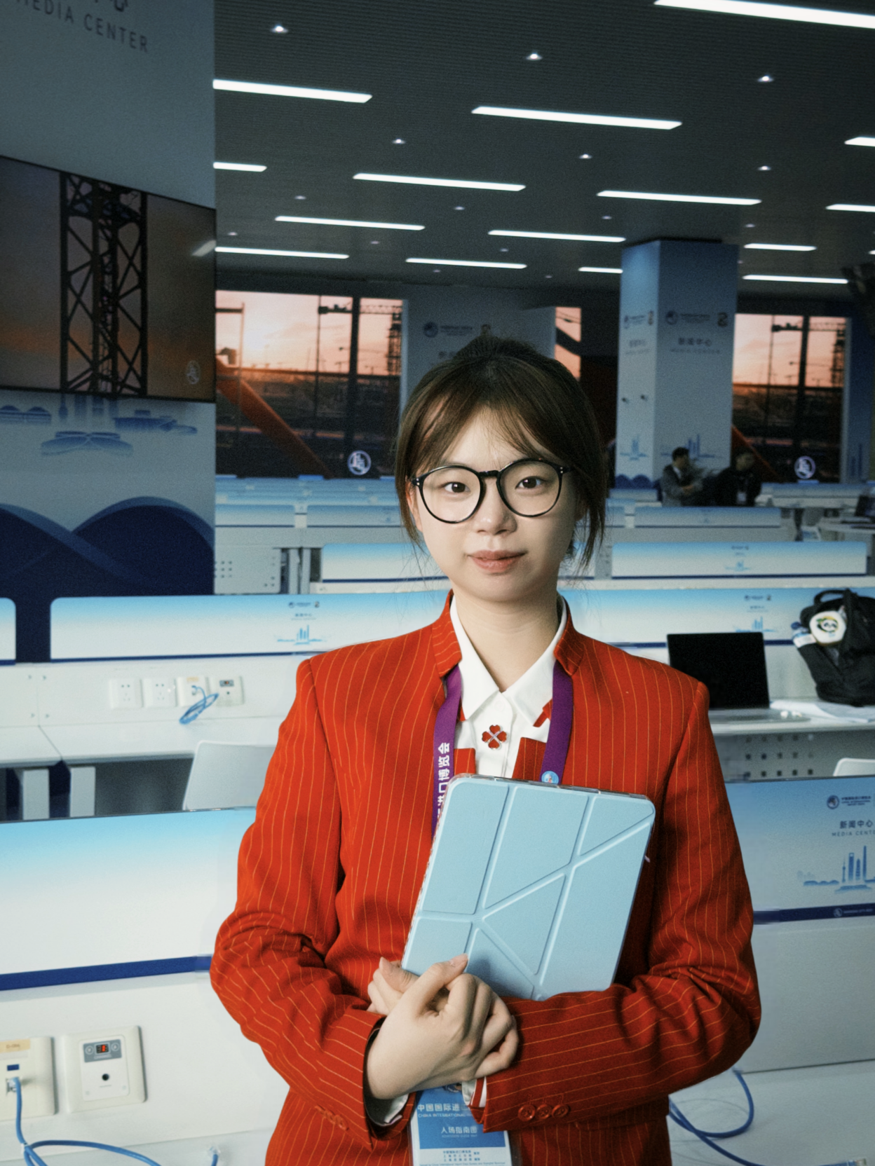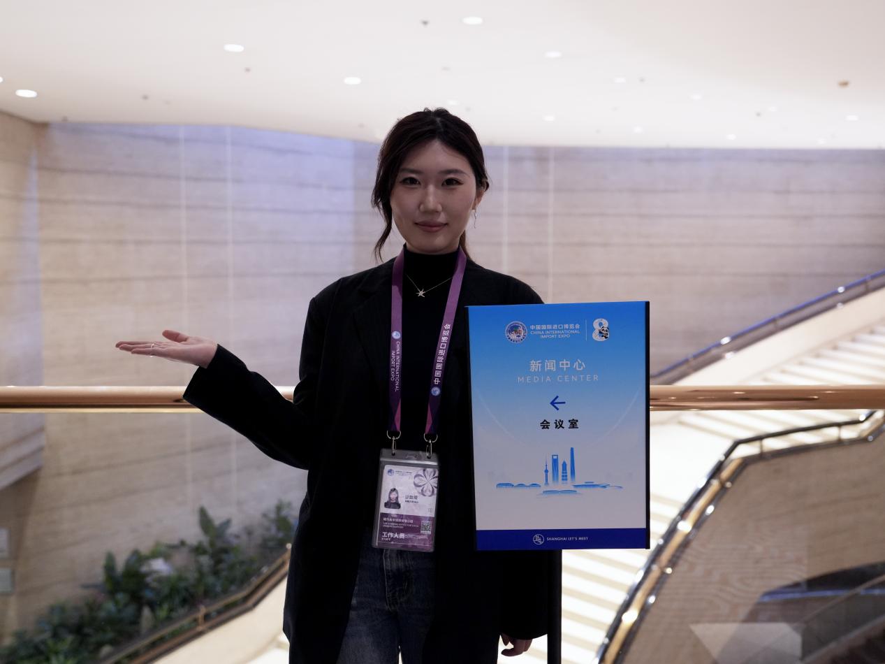 自本科在上海求学以来,我一直十分向往能够成为一名进博会“小叶子”,十分有幸能够在今年圆梦。连日来,我努力将课堂所学的传播理论转化为实践能力,以专业素养服务嘟嘟成人网的运营工作,用最好的精神面貌迎接来自世界各地的媒体朋友。亲身参与其中,更感这份经历的珍贵与意义。