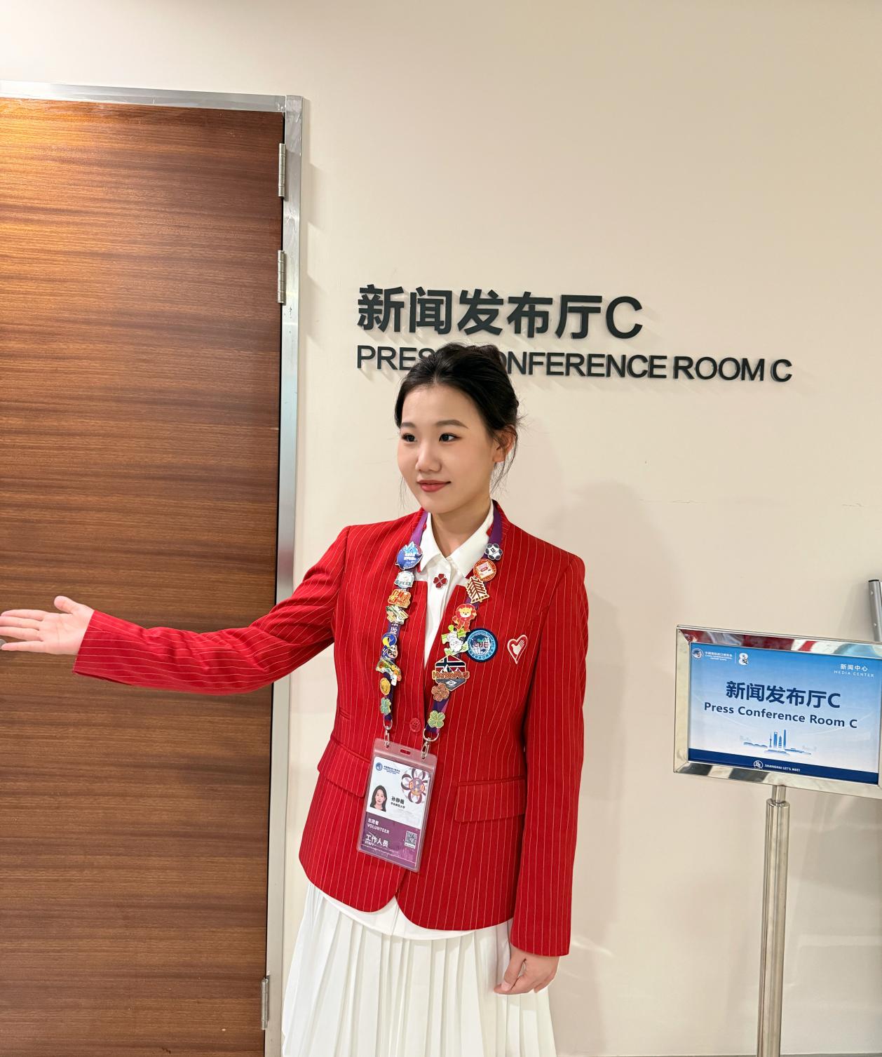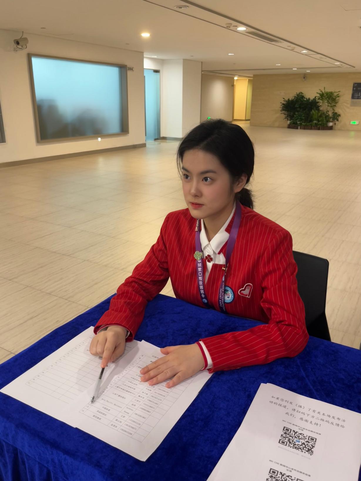 我的岗位是嘟嘟成人网运营服务志愿者。作为进博会的“信息中枢”,课堂上所学的专业知识在这里具象化:每一个指引手势、每一次耐心解答、每一处设备保障,都是向中外媒体传递进博会组织水平与中国青年志愿者形象的重要符号。作为传院学子,能在此助力中国开放自信的形象传播,我倍感自豪。