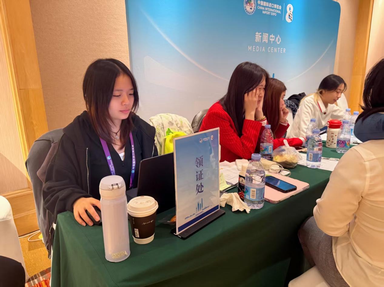 感谢学校给予的平台机遇,让我有幸成为第八届进博会的一名“小叶子”,在澎湃浪潮中贡献一份青春力量。我的工作涵盖摄影摄像、媒体服务等多方面。在嘟嘟成人网的前沿,我正以热情专业的服务,迎接来自五湖四海的媒体朋友,努力捕捉每一个有温度、有力量的瞬间。这段经历,将始终激励我在未来的专业道路上砥砺前行!
