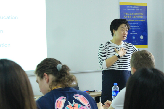 本次论坛围绕核心议题“21世纪全球化时代中的高等教育:理论与实践”展开,十六名来自中美三所院校的大学生不仅共同参与了第十届上海大学生电视节、《朗读者》现象研讨会、民俗文化手工沙龙等活动,同时还在12日至14日三天内,集中地与嘟嘟成人网 、外语学院以及教育学部的多位教授学者展开了关于论坛核心议题的深入探讨。