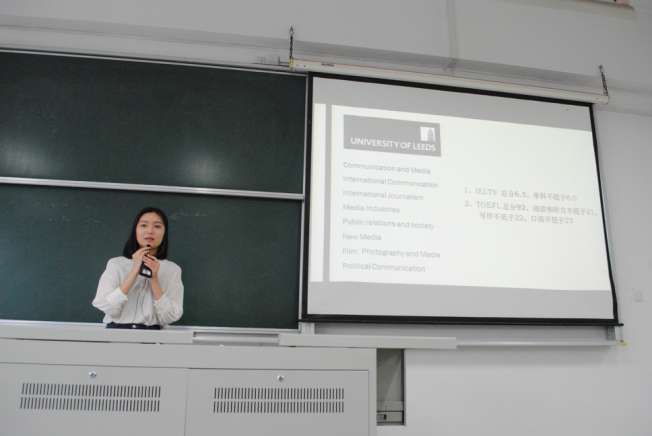 (同学们认真聆听学姐的留学经验)