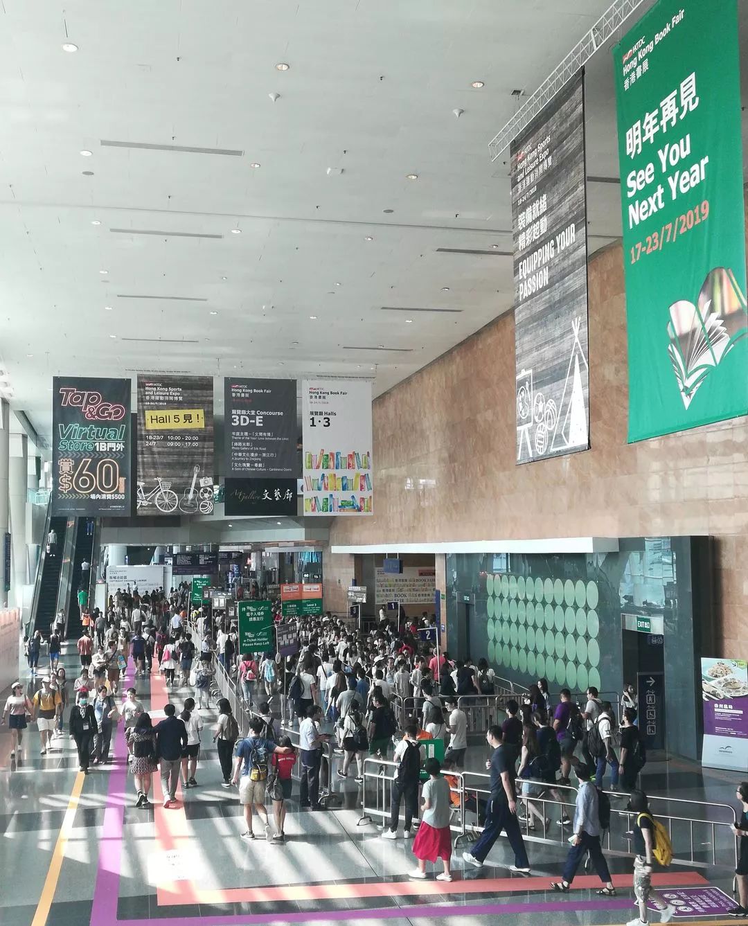 展馆一共五层:一楼主要按出版机构分,以香港、台湾各大主力出版社为主,今年的主宾省是浙江。三楼是儿童天地。二、四楼都是讲座和研讨会。五楼餐厅。