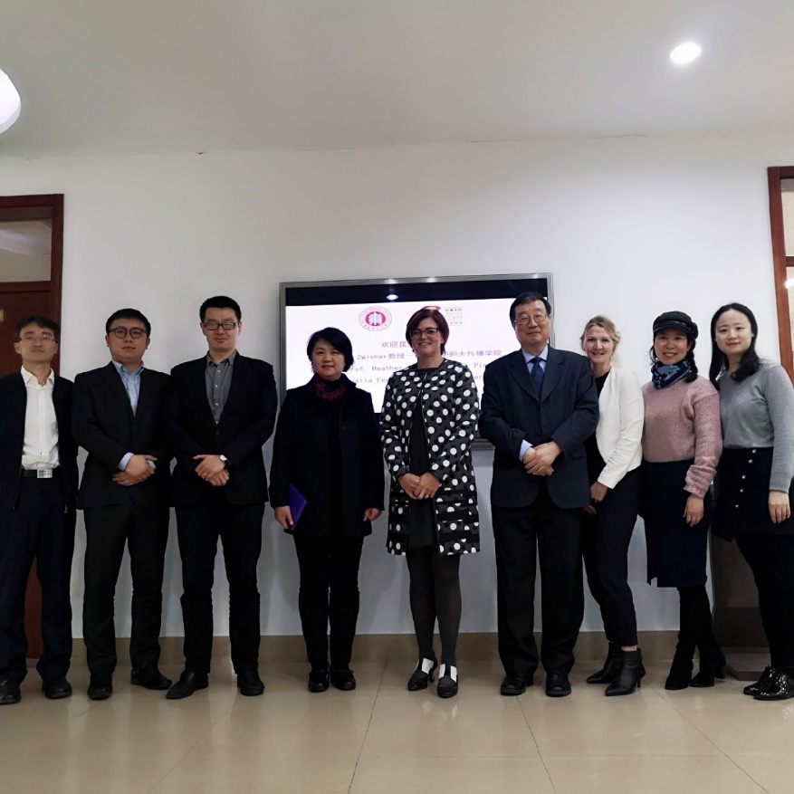 讲座结束后,昆士兰大学人文与社会科学院院长Heather Zwicker教授、人文与社会科学院国际发展经理Majella Ferguson、昆士兰大学语言与文化学院讲座教授、孔子学院外方院长陈平教授、昆士兰大学上海办事处工作人员,与嘟嘟成人网 院长吕新雨教授、副院长陈虹教授、路鹏程副教授以及嘟嘟成人网 外事秘书吉思琪老师在嘟嘟成人网 会议室举行了午餐座谈会。