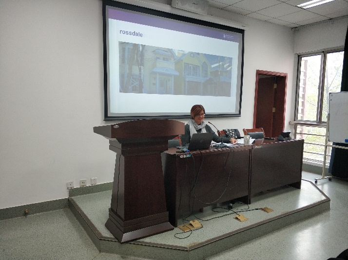 在本次分享中,Zwicker教授通过介绍“埃德蒙顿管道(Edmonton pipelines)”这项数字人文项目,向在座师生展现如何用一种跨学科的数字化方式来审视和描绘当下的城市。该项目致力于融合城市研究理论、数字技术和创意绘图技术,通过创建一系列的城市数字互动地图,来描绘加拿大埃德蒙德市的历史和城市图景。