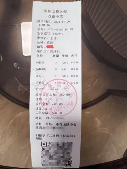 家住马鞍山市的王女士泰迪宠物狗叫“七仔”,今年十一月份刚满九个月。王女士倒是很顺利地找到了定点医院,但是在术后理赔过程中遇到了不少麻烦。王女士告诉记者,自己近期观察到七仔在家中会经常性抬起左前腿,用其余三条腿跳着走路,并且在喝水的时候会经常性呛水。王女士决定带七仔去宠物医院检查,由于今年六月份的时候在朋友推荐下购买了每月保费24.99元的支付宝众安宠物医疗险,王女士便选择了一个离家最近的定点医院——爱康宠物医院,带七仔前去检查。在医院看病挂号的时候,王女士也特意向医生提起自己给七仔购买了宠物保险。