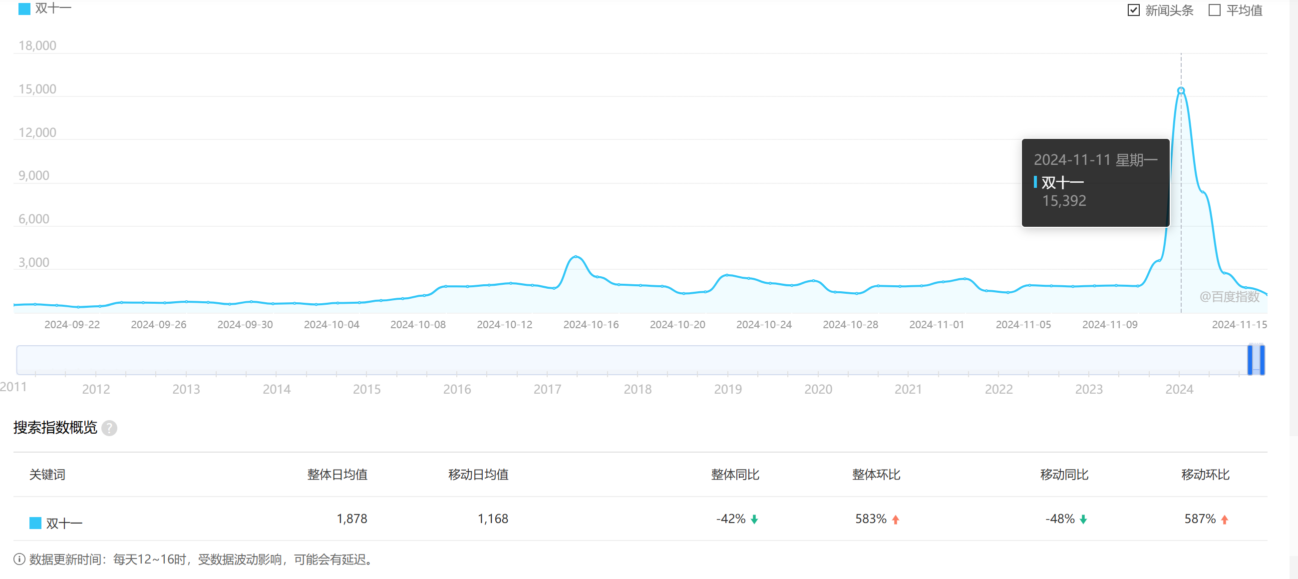 2024年“双十一”一词的百度搜索指数