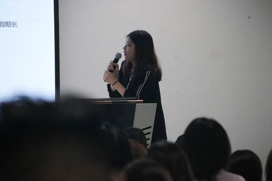 宣讲会伊始,副院长陈虹老师介绍了校级层面的研究生教育国际化项目,涵盖了国家公派、国(境)外访学、国际会议资助、校际交流及联合培养项目。与此同时,陈虹老师对研究生新生们提出了几点希望,鼓励同学们以更宽的视野、更高的素质、更坚韧的意志,成为具有全球视野、多元思维、善于跨文化沟通、交流与合作的未来一代。