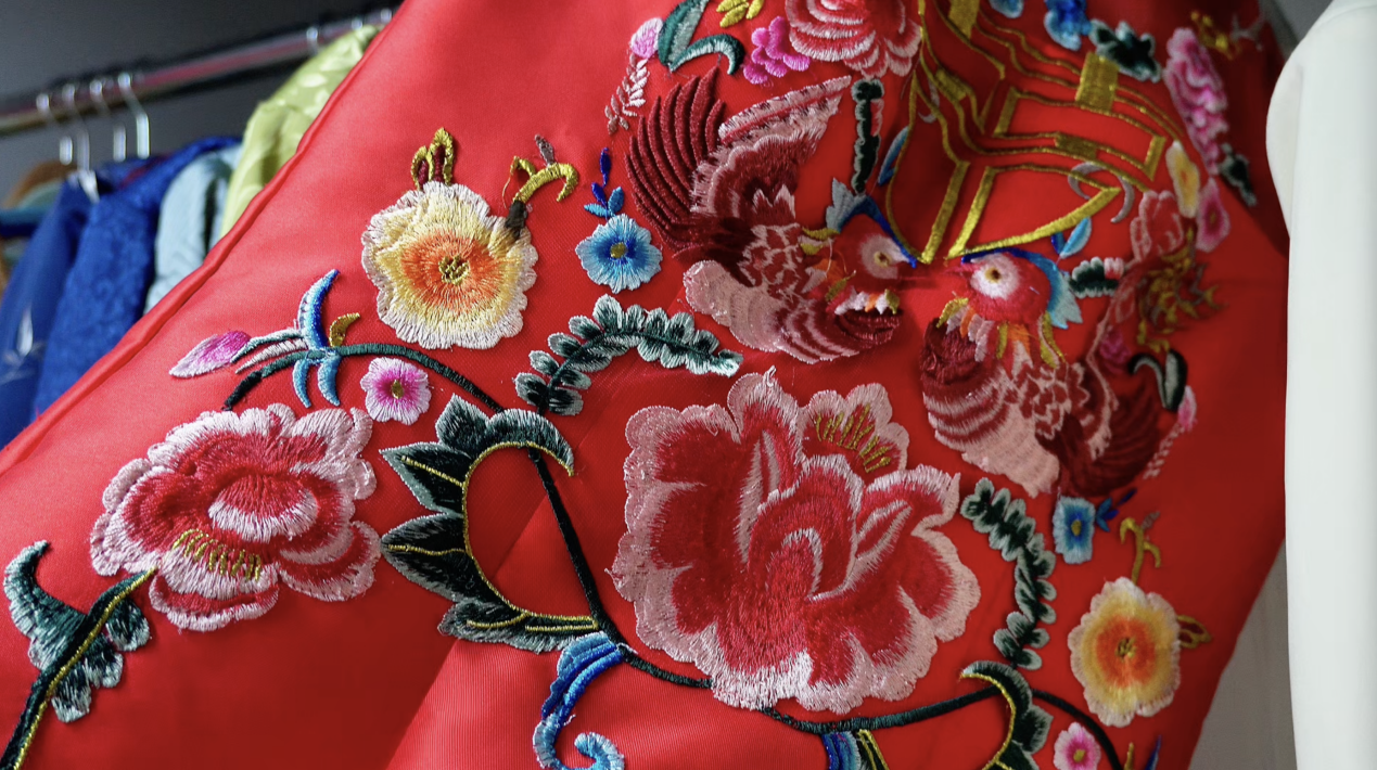 海派旗袍正起源于20世纪20年代,摩登与传统并存交融的上海。脱胎于满族传统旗服,融合西洋裁剪工艺,海派旗袍以贴身、修长的剪裁为主要特色,强调女性的曲线美。其款式多样,多采用丝绸、雪纺等材质,色彩大胆鲜艳。“旗袍的领口很高,体现女性的颈部线条。还有我衣服上的花纹,像如意、牡丹这种很吉祥图案。尽管我挑这件旗袍黯淡了些,但是我觉得穿在身上还是很靓丽的。”成员崔素珍如数珍宝地介绍着自己的旗袍。