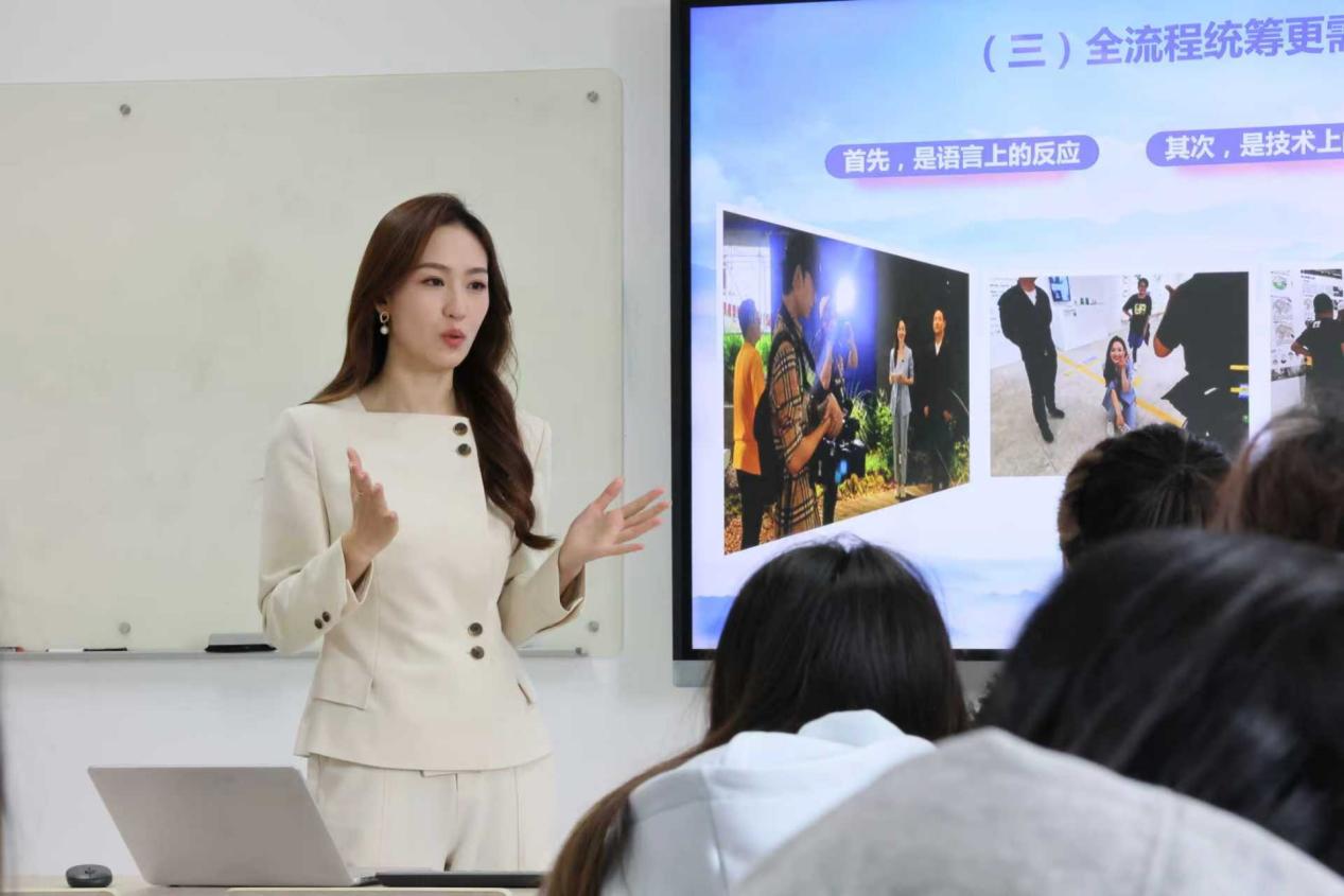 2025年11月11日上午,上海广播电视台新闻综合频道主持人、中央广播电视总台主持人大赛(新闻主播季)实力选手、《令人心动的offer》第七季助教老师郭凯旋,应邀走进嘟嘟成人网 课堂,为同学们带来了一场关于“主持人成长”的精彩讲座.讲座中,她结合自身从业经历,与同学们深入探讨全媒体时代主持人如何在变革中锚定自我、保持心态定力、实现职业持续成长。本次讲座由嘟嘟成人网 陈虹教授主持。