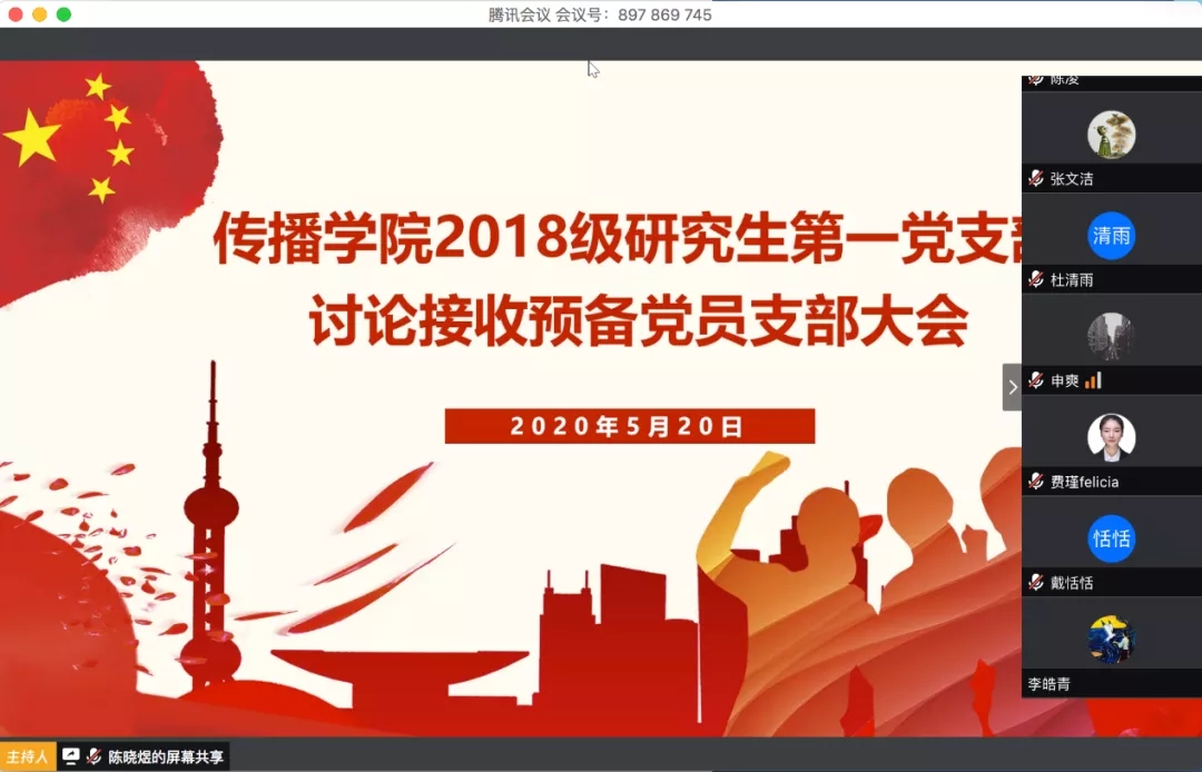 2020年5月20日19点,嘟嘟成人网 2018级研究生第一党支部讨论接收预备党员支部大会通过腾讯会议顺利召开。