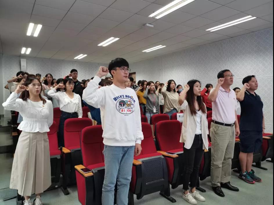 随后,大会进行了第三项议程,李函昱同志带领全体党员重温入党誓词,并宣布嘟嘟成人网 2020级研究生第一、第二党支部正式成立。