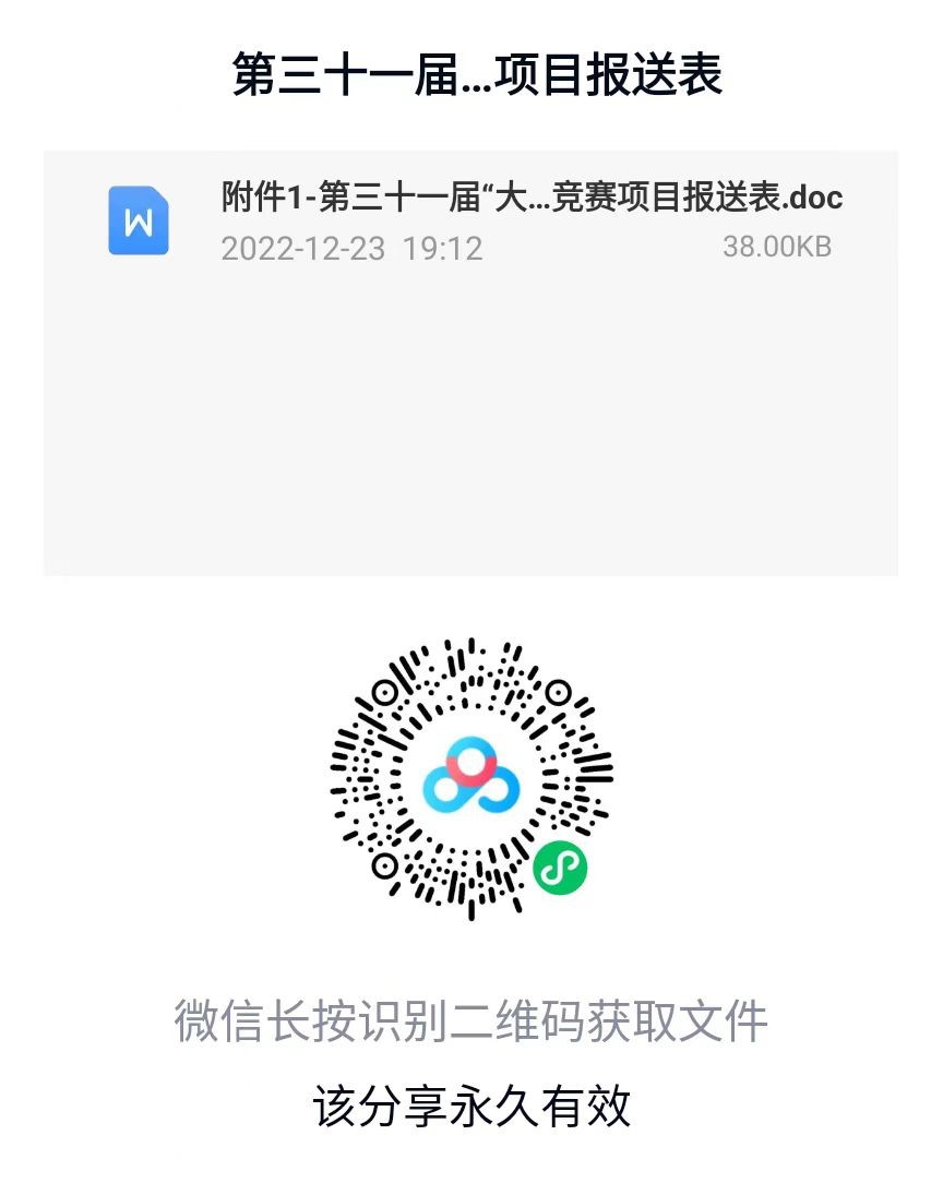 项目报送阶段:各学部、书院、院(系)做好参赛项目预报送工作,将纸质版各参赛项目报送表(附件1)发送至邮箱:[email protected](邮件请以“参赛作品作者类型+作品类型+申报者年级专业+姓名+项目名”的形式命名)。