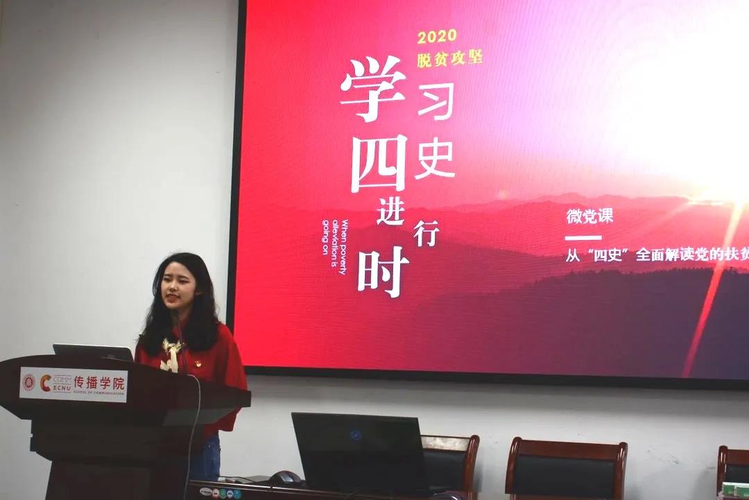 为进一步贯彻落实习近平新时代中国特色社会主义思想,扎实推进党员“四史”学习教育,11月13日中午,嘟嘟成人网 2020级研究生第二党支部于学院212报告厅开展微党课录制活动。本次录制主要分为两部分,首先嘟嘟成人网 第二党支部党员毛佩筠同志围绕“四史引导下的脱贫攻坚”进行讲解,展示习近平总书记提出的学习四史的重要意义,鼓励党员们要将学习贯彻党的创新理论作为思想武装的重中之重,并将学习党史、新中国史、改革开放史、社会主义发展史结合起来。