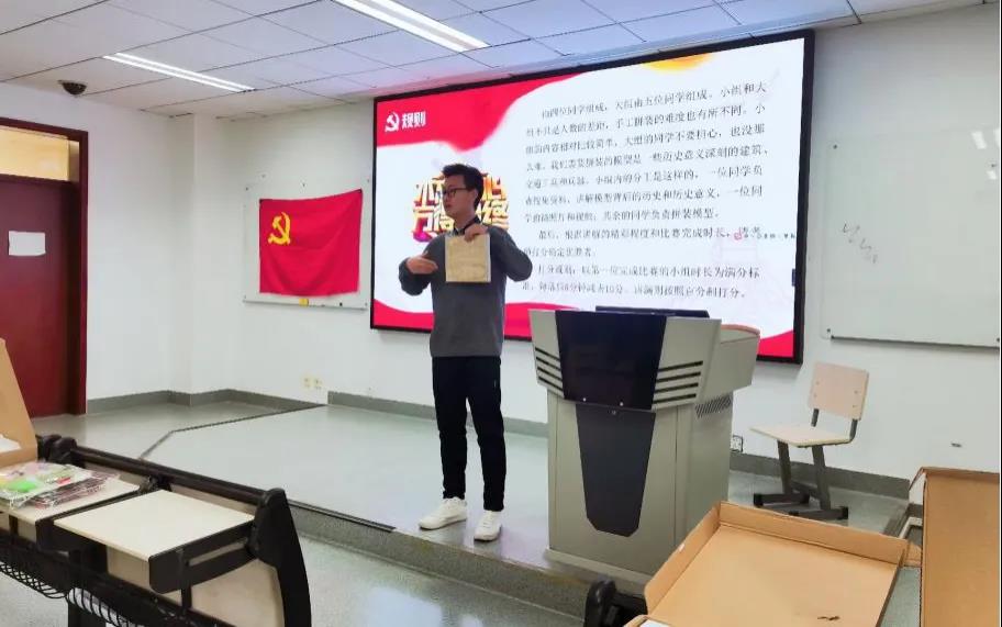 本次活动由嘟嘟成人网 2020级研究生第一党支部书记韩亚鲁同志主持。竞赛正式开始之前,韩亚鲁同志宣布了活动的具体要求和评分细则。接下来,党员同志们随机结成小组,自行分工并协力搭建红色主题手工模型。