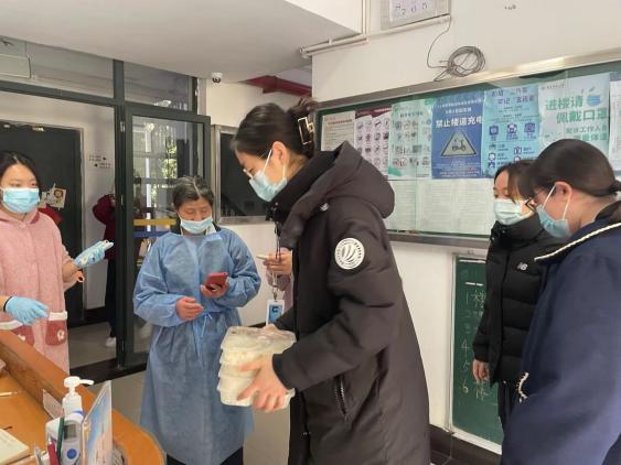 从1人到300多人逐渐壮大的“虹梅南路学生党员志愿者之家”,每层楼自发形成的楼层志愿者小分队,核酸检测、物资配送、三餐发放等多条工作线在全校师生的协同合力之下紧张有序地进行着。我作为楼层长,日常工作除了分发三餐和回收垃圾,还需要统计各种数据、清点配送物资等,帮助解决同学们的生活需求。“封楼”后的前几天,所有的事情都需要亲历亲为,但随着越来越多的楼层志愿者加入,大家根据自己的时间填写了分工表,每天到了发饭、回收垃圾的时间点时,志愿者们都会积极主动地完成任务。
