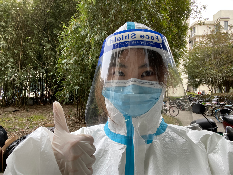封控管理期间,我报名加入了楼层的后勤保障志愿者队伍,也参与了核酸检测点的志愿服务工作。每日为同学们发放三餐、搬运物资、清理餐余与生活垃圾。志愿工作枯燥但很充实,楼层内瞬间成立起的十余人“吃饭天团”志愿者队伍每日按照排班认真工作,不禁让我感动于当代青年的使命与担当。令我印象深刻的是同学们在楼下捆扎垃圾时,穿着防护服的阿姨微笑着说:“谢谢你们,辛苦了。”我为自己的点滴举手之劳能够减轻他人的工作量而感到幸福,也坚信在疫情防控关键阶段,每个人奉献的力量会使防控更加精准有效。春信有期,且共从容,并肩抗疫,共同守“沪”。