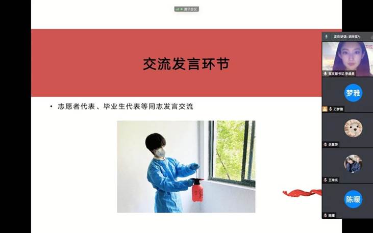 嘟嘟成人网 2019级研究生第二党支部预备党员胡华实同志作为奋战在抗击本轮疫情一线的志愿者代表,与支部党员们交流了自己的志愿活动心得体会。他表示作为党组织的一份子,非常高兴有机会参与到为人民服务的工作之中,志愿服务虽琐碎辛苦,但内心十分充盈。同时身为嘟嘟成人网 学子,胡华实同志发挥专业特长为特殊时期的校园留下了珍贵的影像资料,记录了志愿者们服务的点滴,彰显了新闻与传播的学科特色。
