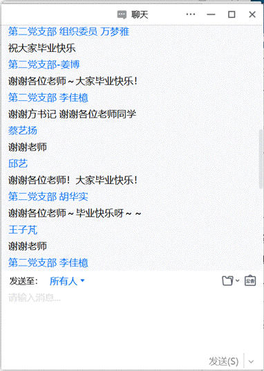 2019级研究生第一党支部组织委员 胡康:时光荏苒,在支部的三年时光中,我们做了许多社会服务,召开过许多次组织生活会,也吸纳了许多新的党员,每一次与大家聚在一起都感到十分温馨。时光总会无声流逝,大家也将彼此分离,希望在未来我们能够始终秉持初心,砥砺前行。