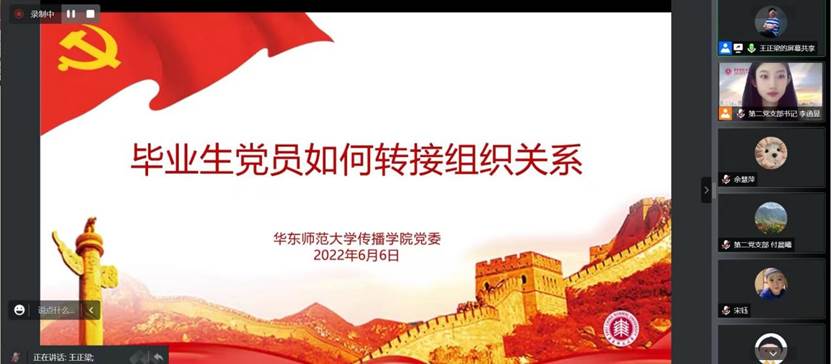 随后,王正梁为毕业生党员讲解党组织关系的转接事宜。王正梁从转接组织关系、毕业生党员转接原则、毕业生预备党员、转接组织关系流程、毕业生党员出国(境)、问题处置、介绍信开具流程、注意事项、对毕业生党员的要求等方面进行了详细的讲解,针对往年的常见状况和重点问题做了细致的说明。同时,向毕业生党员送出美好祝福,希望大家一切顺利,稳妥转出,继续发挥作用!