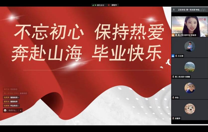 2019级研究生第二党支部书记 李函昱:非常开心能够看到每位同志在我们几年的研究生生涯和党支部生活中都收获颇丰,我相信每一个即将走上工作岗位的支部党员都会继续积极发挥党员的先锋模范作用,肩负新时代给予青年的使命,努力将为人民服务的责任进行到底。