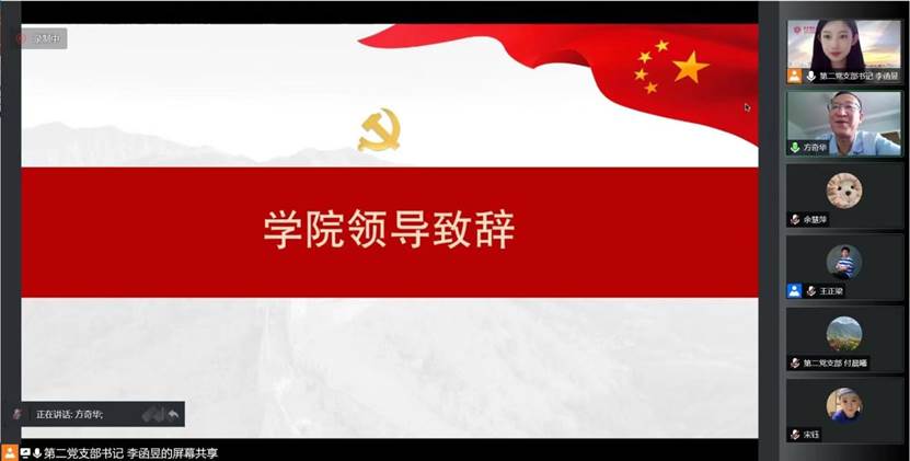 2022年6月6日下午,嘟嘟成人网 2022届研究生党员离校教育专题组织生活会在线上顺利召开。嘟嘟成人网 党委书记方奇华、党委副书记兼副院长杜彬彬、党委专职组织员王正梁,团委书记、研究生辅导员吴烨茜,2019级研究生党建指导教师、研究生辅导员何柳萍出席本次会议,2019级研究生第一党支部、第二党支部全体党员参加。会议由2019级研究生第二党支部书记李函昱主持。