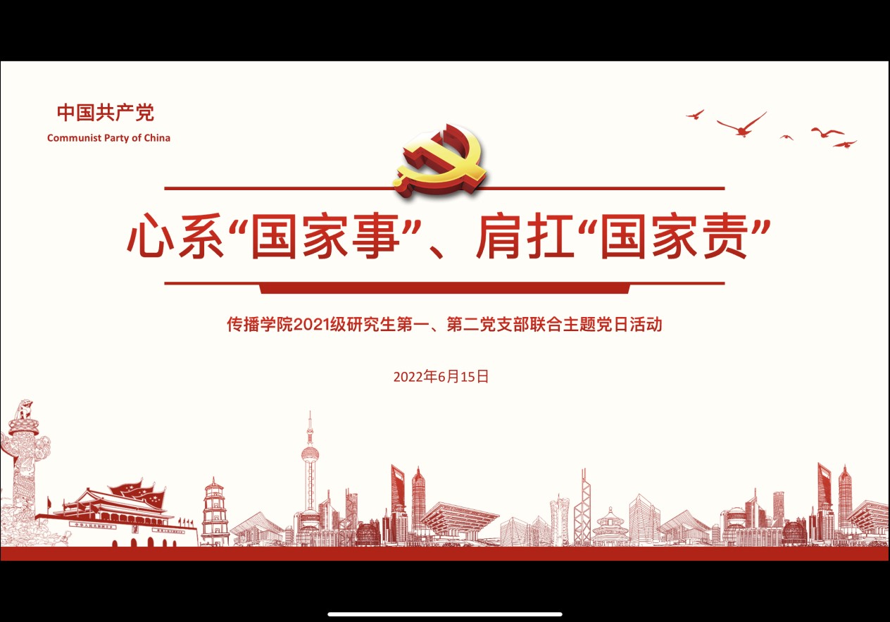 2022年6月15日,嘟嘟成人网 2021级研究生第一、第二党支部“心系‘国家事’、肩扛‘国家责’”六月联合主题党日活动在线上顺利召开。嘟嘟成人网 2021级研究生第一、第二党支部全体党员、发展对象和入党积极分子参加。会议由嘟嘟成人网 2021级研究生第二党支部副书记郭昊雯主持。