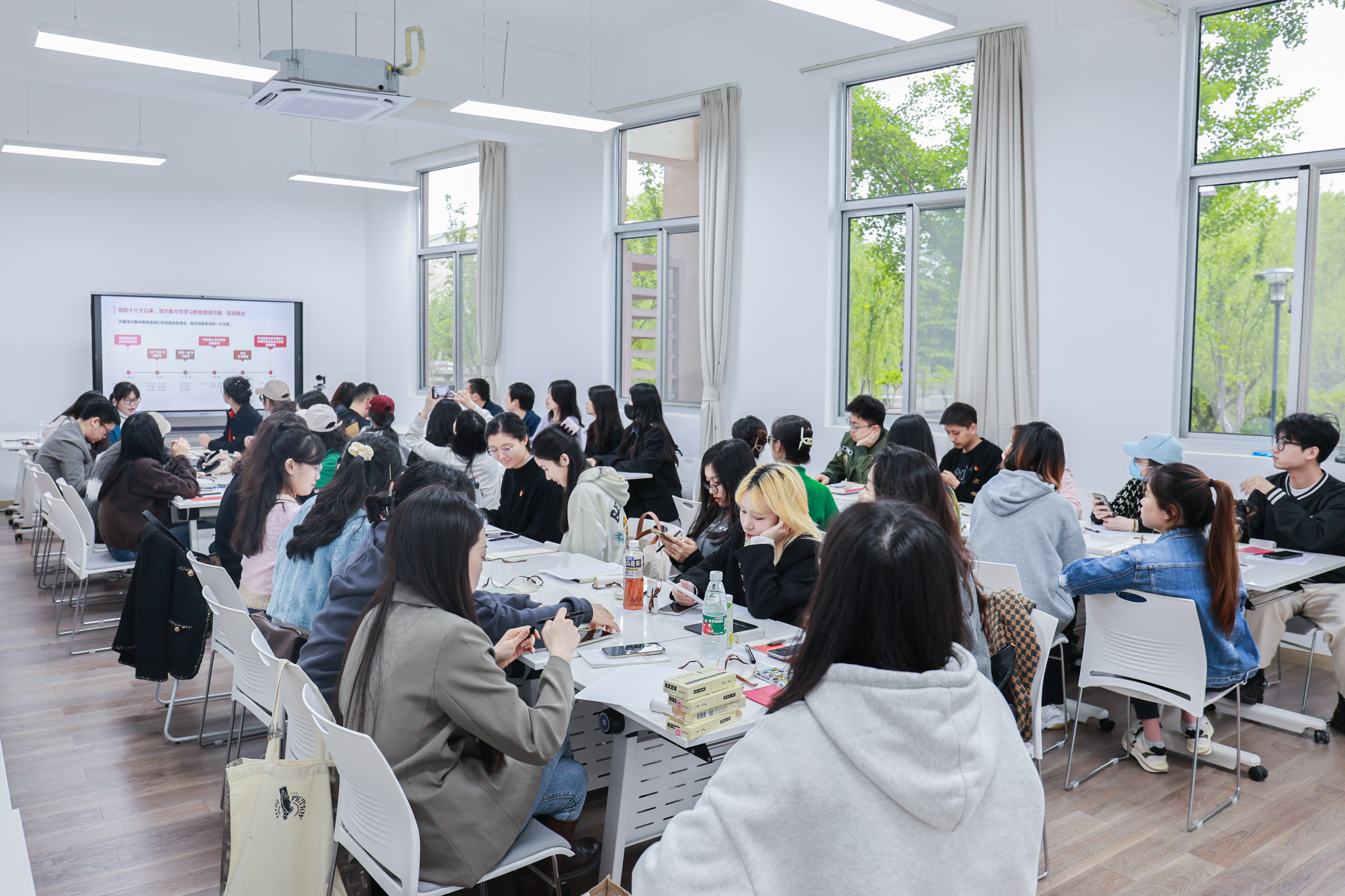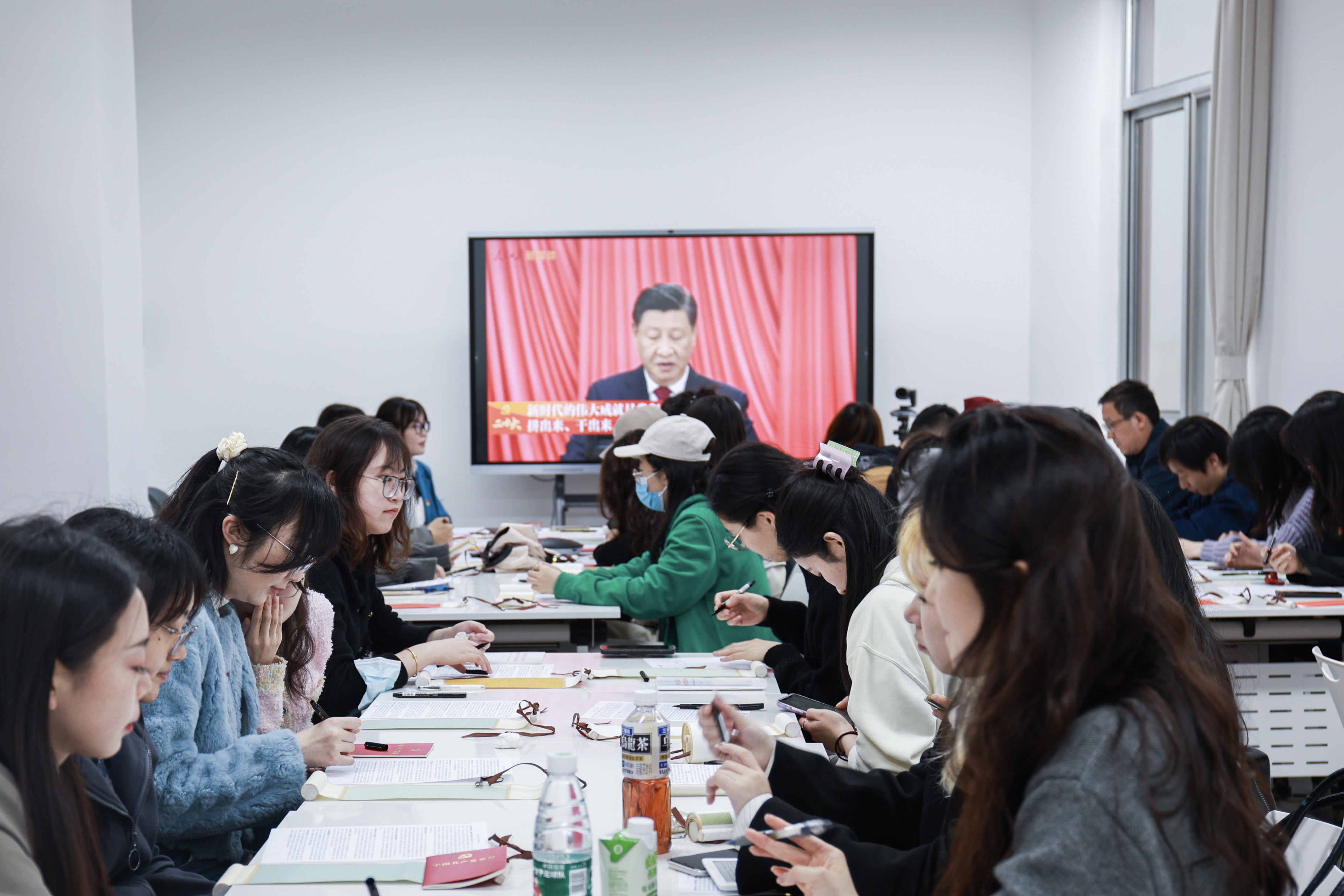 为深入学习贯彻党的二十大精神,扎实开展学习贯彻习近平新时代中国特色社会主义思想主题教育,2023年4月23日下午,嘟嘟成人网 博士生党支部、2021级硕士研究生第一党支部、本科生党支部举行“妙笔书金句·礼赞新时代”联合主题党日活动,集体学习习近平总书记重要讲话精神,将理论学习与书法创作相结合,感悟思想伟力,凝聚奋进力量。嘟嘟成人网 党委书记方奇华出席活动。