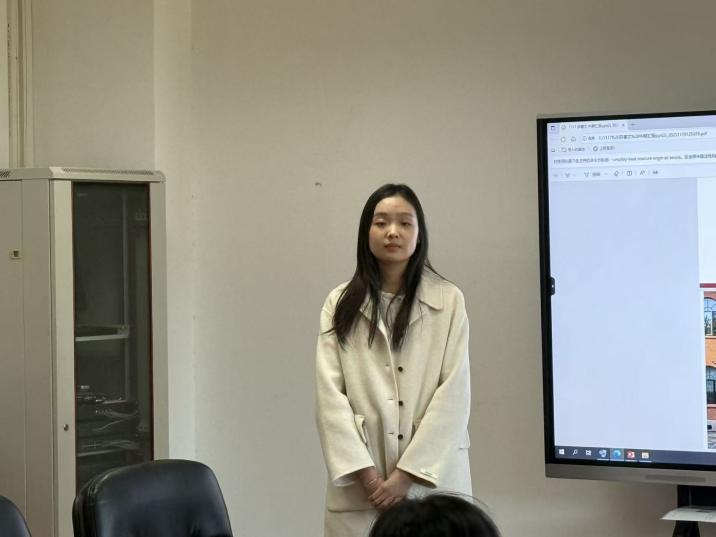 孙浩榕同学汇报创新训练培育项目“生成式人工智能对后真相时代事实核查的影响”的中期研究进展。