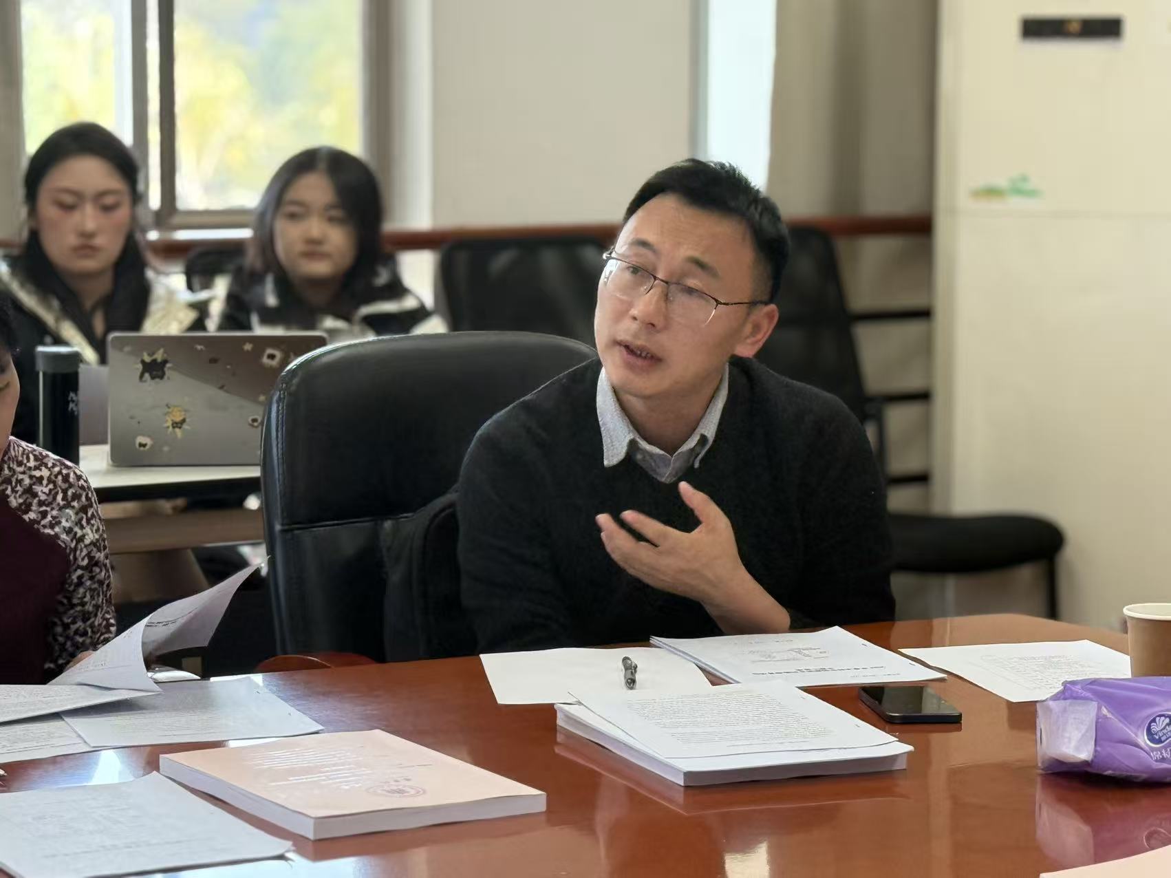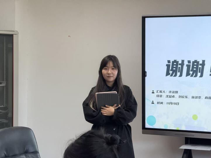 许淑妍同学汇报创新训练培育项目“数字时代/社交媒体逻辑下乡村形象的媒介呈现 ——以影视、新闻、抖音、小红书、b站平台为例”的中期研究进展。