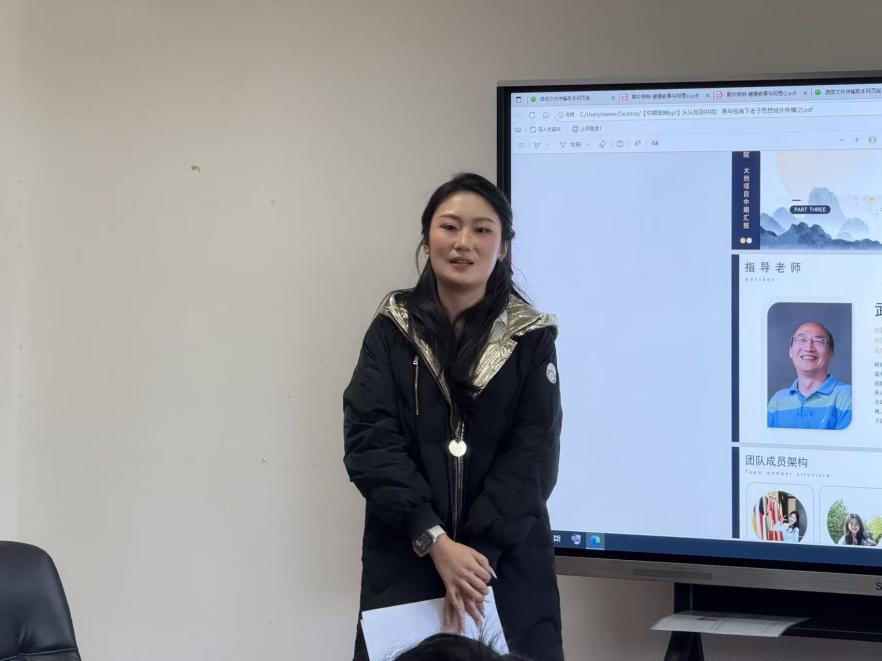 阳嘉怡同学汇报创新训练培育项目“从认知到共鸣:青年视角下老子思想域外传播方式研究”的中期研究进展。