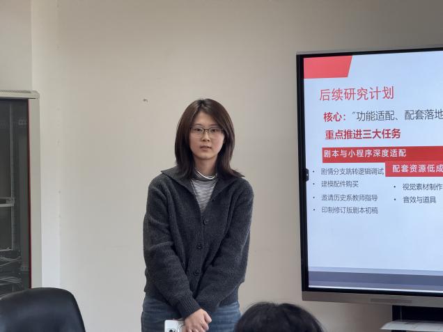 童沛源同学汇报创新训练培育项目“乡村红色剧本杀”的中期研究进展。