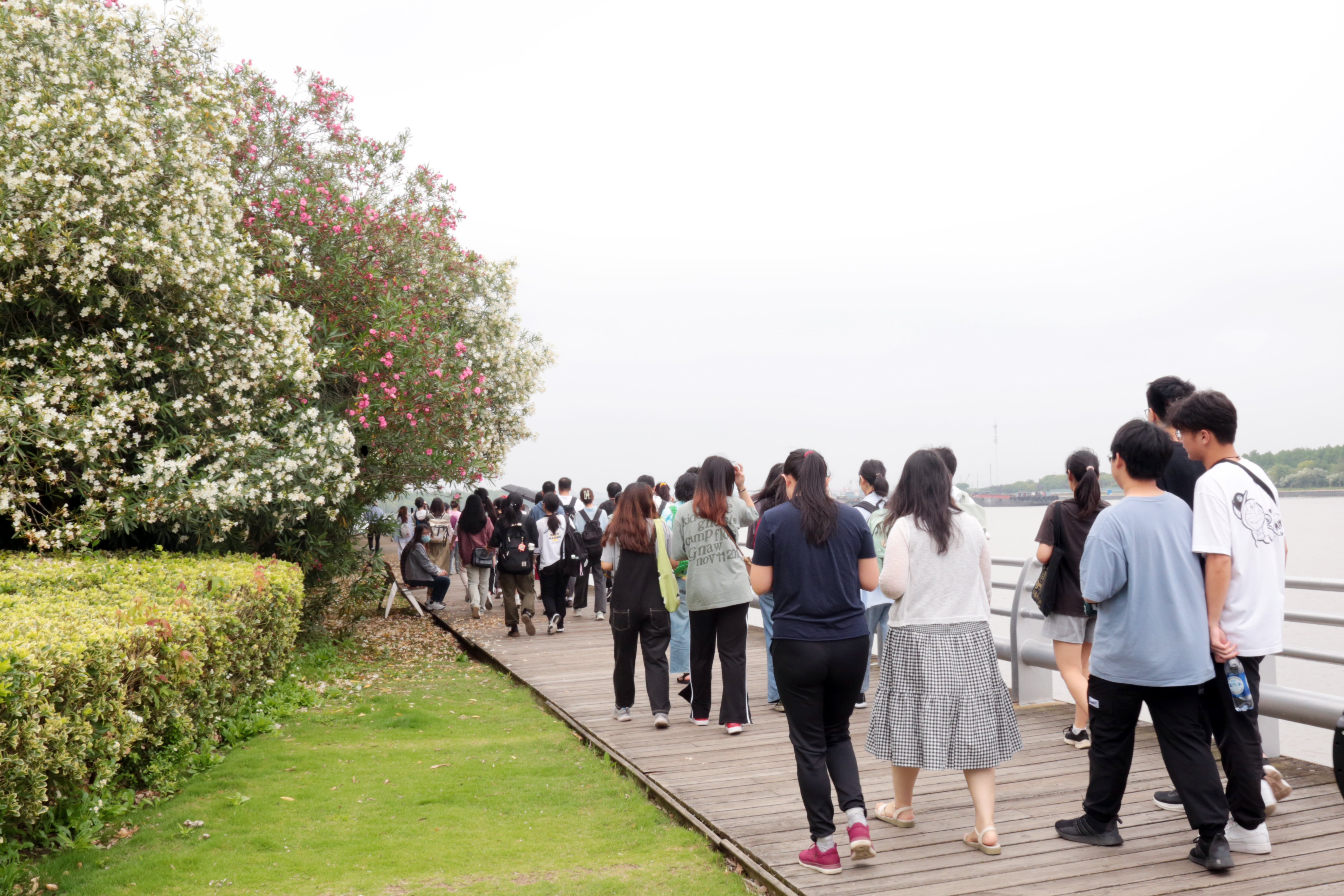 本次调研活动由生态与环境科学学院环境科学系主任张勇、嘟嘟成人网 新闻与广告教工支部教师赵路平、李守时、郭子颀共同带队指导。调研路线从紫竹滨江公园出发,沿黄浦江岸线步行至兰香湖,沿途还参观调研了紫竹高科技园区展示厅。
