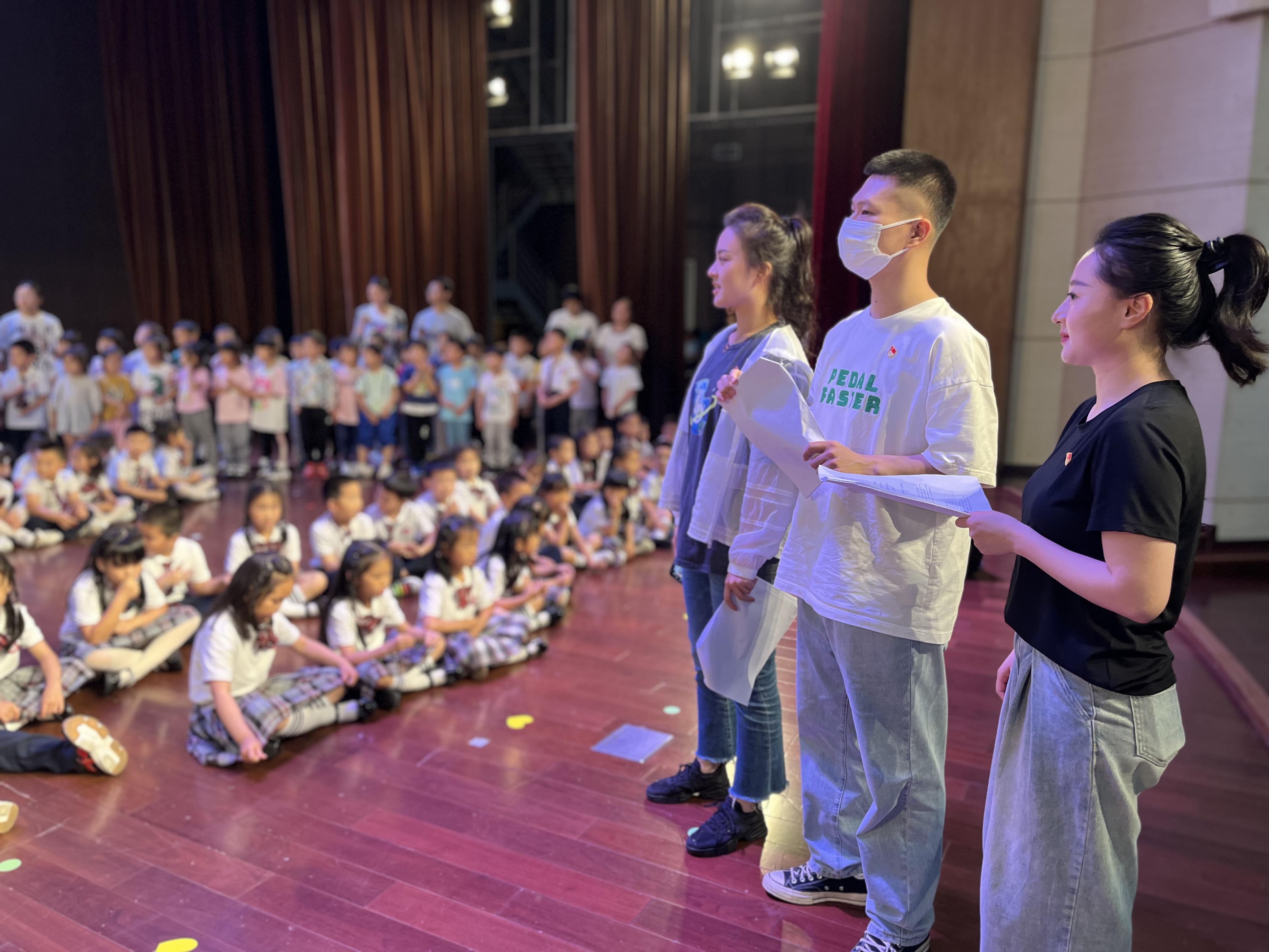 6月15日,周雨洁、余华勇、谭梦心等党员前往嘟嘟成人网 附属紫竹幼儿园,以专业的播音主持知识、通俗易懂的语言、以及循循善诱的教学为幼儿园的孩子们进行朗诵指导,并协助排练节目队形,帮助毕业活动整体把关。