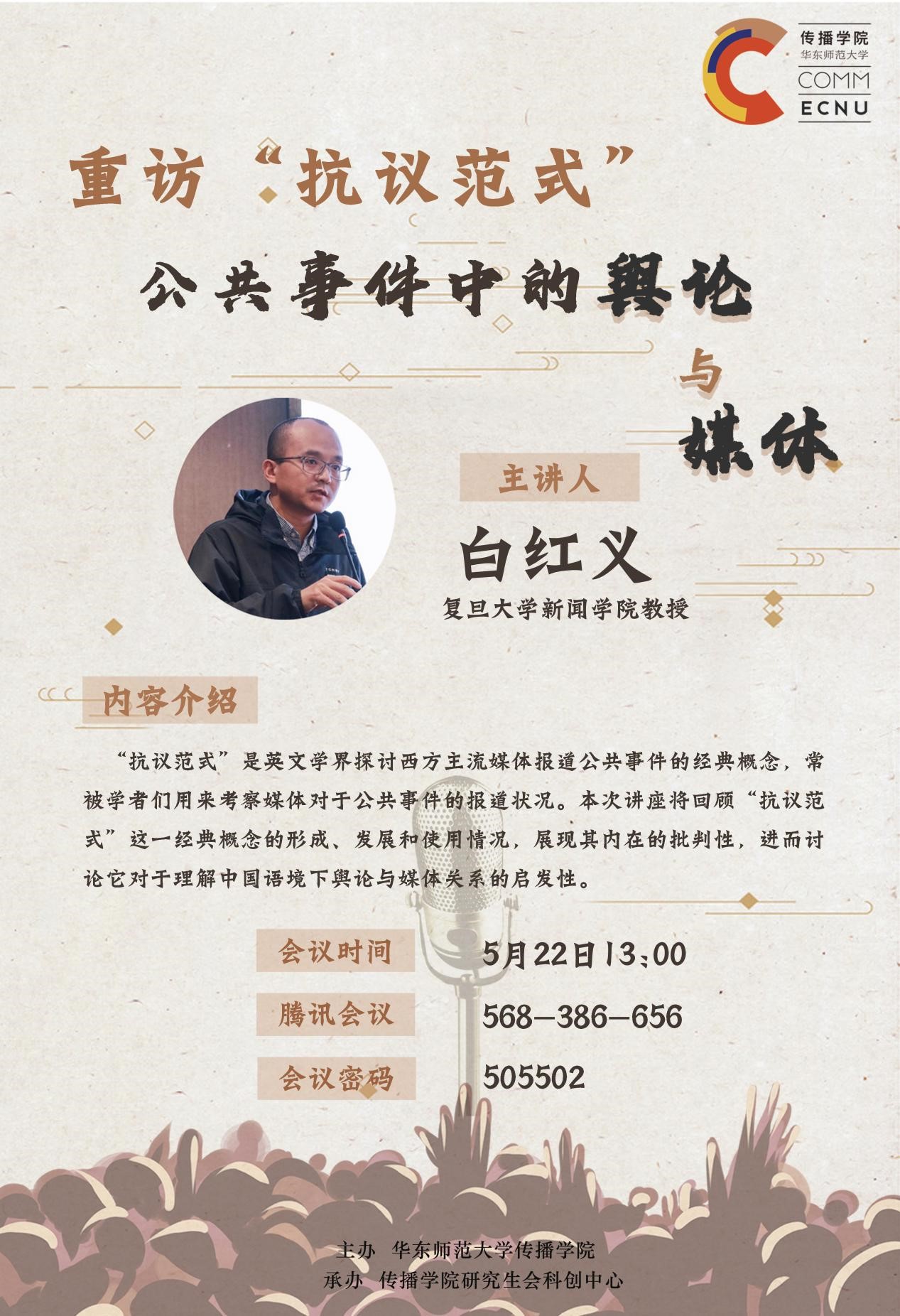“抗议范式”是英文学界探讨西方主流媒体报道公共事件的经典概念,在过去30年的发展中被学者们用来考察以往的大众媒体和当下的社交媒体对于公共事件的报道状况。本次分享将回顾这一经典概念的形成、发展和使用情况,展现其内在的批判性,进而讨论它对于理解中国语境下舆论与媒体关系所具有的启发性。