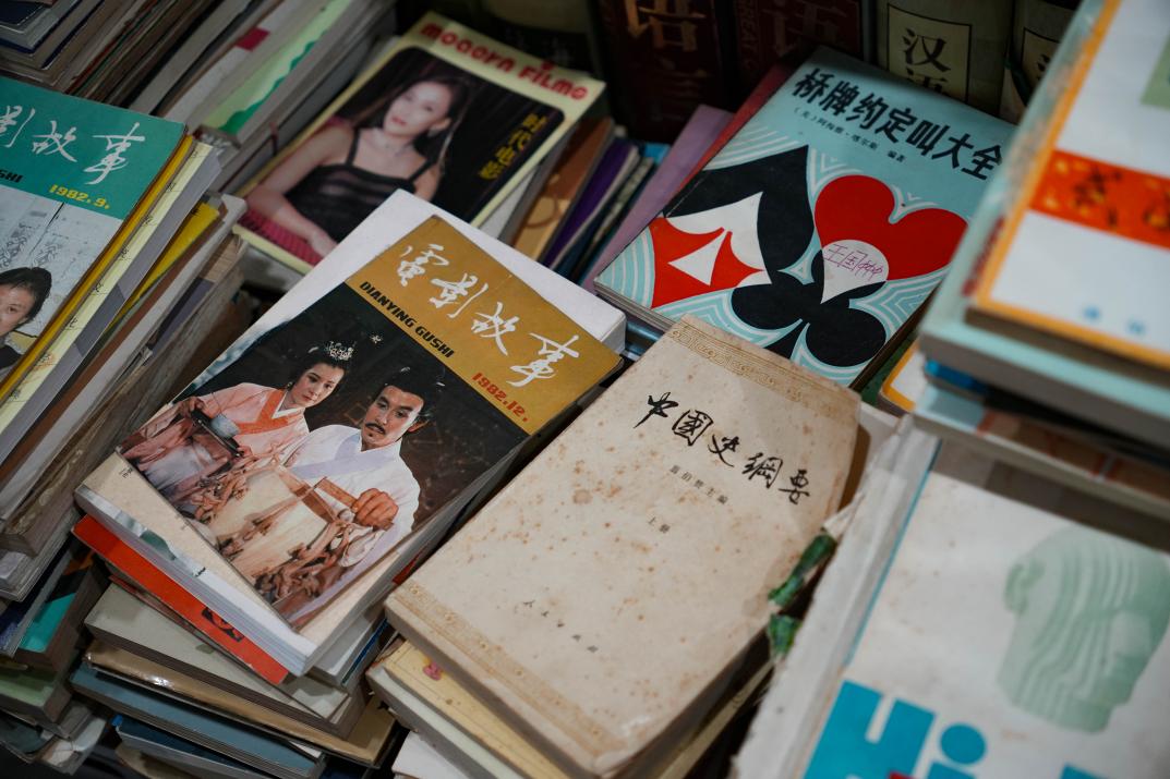 和店主张强聊天时,他正在整理书架顶部的一摞旧书,动作特别轻。“我跟旧书打交道,算下来有26年了。”今年48岁的他,1999年从江苏来上海打拼,口袋里只剩几十块钱时,在复旦附近撞见毕业季的学生把书当废品扔,“心里疼得慌”。就那样,他用仅剩的零钱买了十几公斤旧书,剪开从废品站捡的蛇皮袋,在复旦文科图书馆门口摆起了书摊。