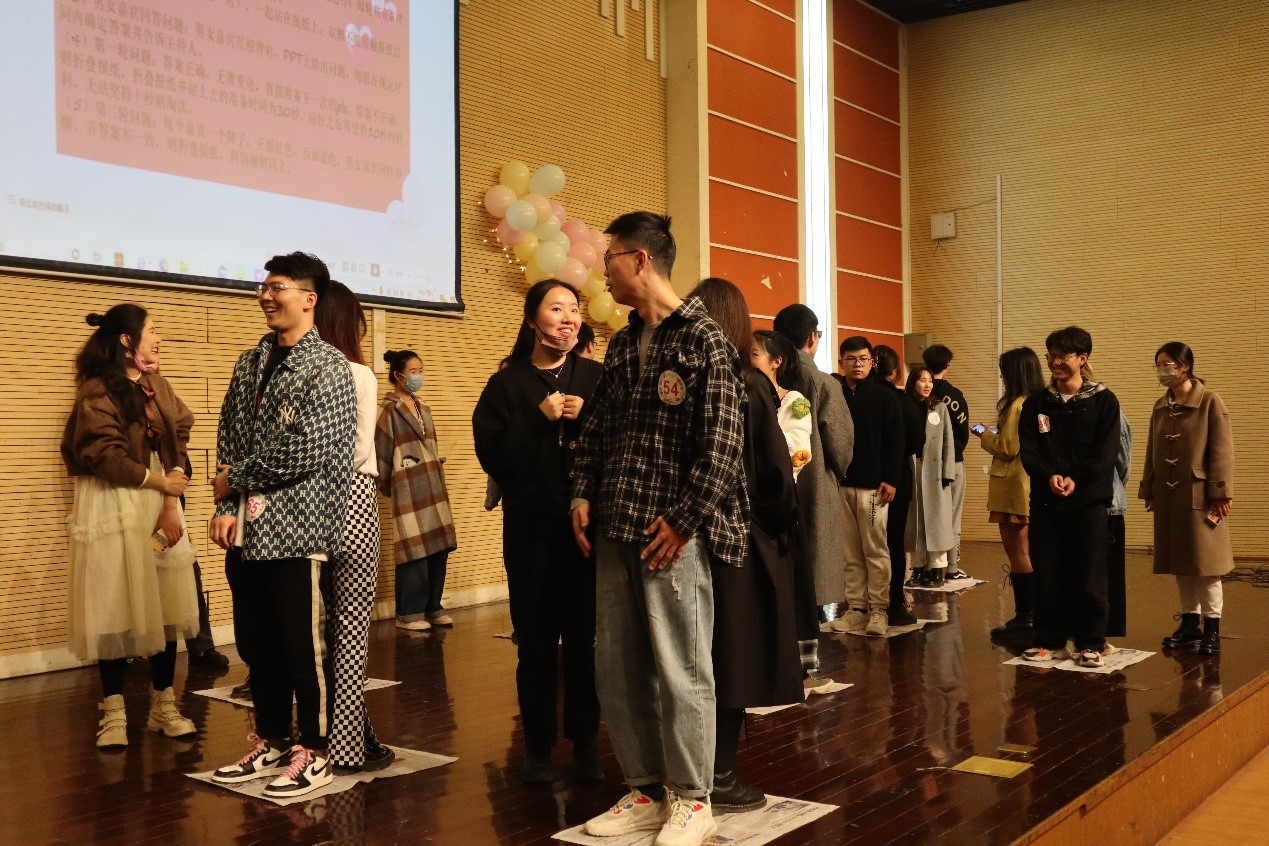 11月20日18:00嘟嘟成人网 和通信与电子工程学院,生态与环境科学学院联合举办的主题联谊会——“情起华师,缘来是你”在嘟嘟成人网 闵行校区学生活动中心C区舞厅顺利举行。本次联谊会由6个小游戏组成,嘉宾们在一个个环节中相互认识,彼此熟悉,距离也在不断被拉近。