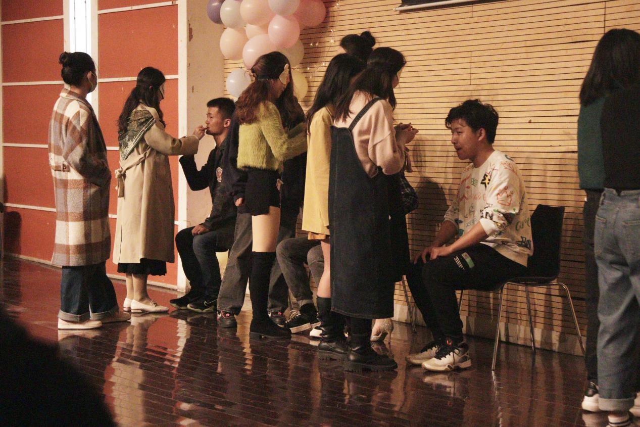 在引导下为男生涂上口红