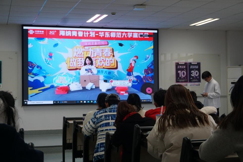 随后,线上导师详细介绍了2022年由联通在线音乐公司与新华视讯联合发起的“燃动青春,做我喜欢的”主题校园短视频创作大赛。联通在线沃音乐市场部副总经理李春秋详细讲解了“海纳青春计划”的整体策略和活动规划,联通在线的虚拟主持人VIVI向在场的华师大学子们详细介绍了四个赛道的主题特点。