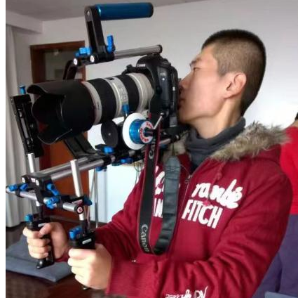 毕业七年,胡俊珂谈起华东师大和嘟嘟成人网 ,依旧无比亲切。在他脑海中,与传院最深度的连结发生在2014年。那一年,他大二,正赶上嘟嘟成人网 建院十周年,刘弢老师带着他共同制作了十周年的院庆视频。在胡俊珂的描述中,他和刘弢老师是“老哥俩”,他们白天拍摄,晚上就蹲在学院四楼角落临时改制的工作室里剪片子。受到拍摄器材和设备的限制,整支视频的制作都透着一股“笨拙”感:他们发明了破产版的实时绿幕抠像,用着没有伺服、没有变焦的纯手动摇臂,把书包当配重替代稳定器;有时候为了想出点特别的运动轨迹,还用了很多笨办法,比如蹲在凳子上然后站起来,模拟一种飞行器的感觉……