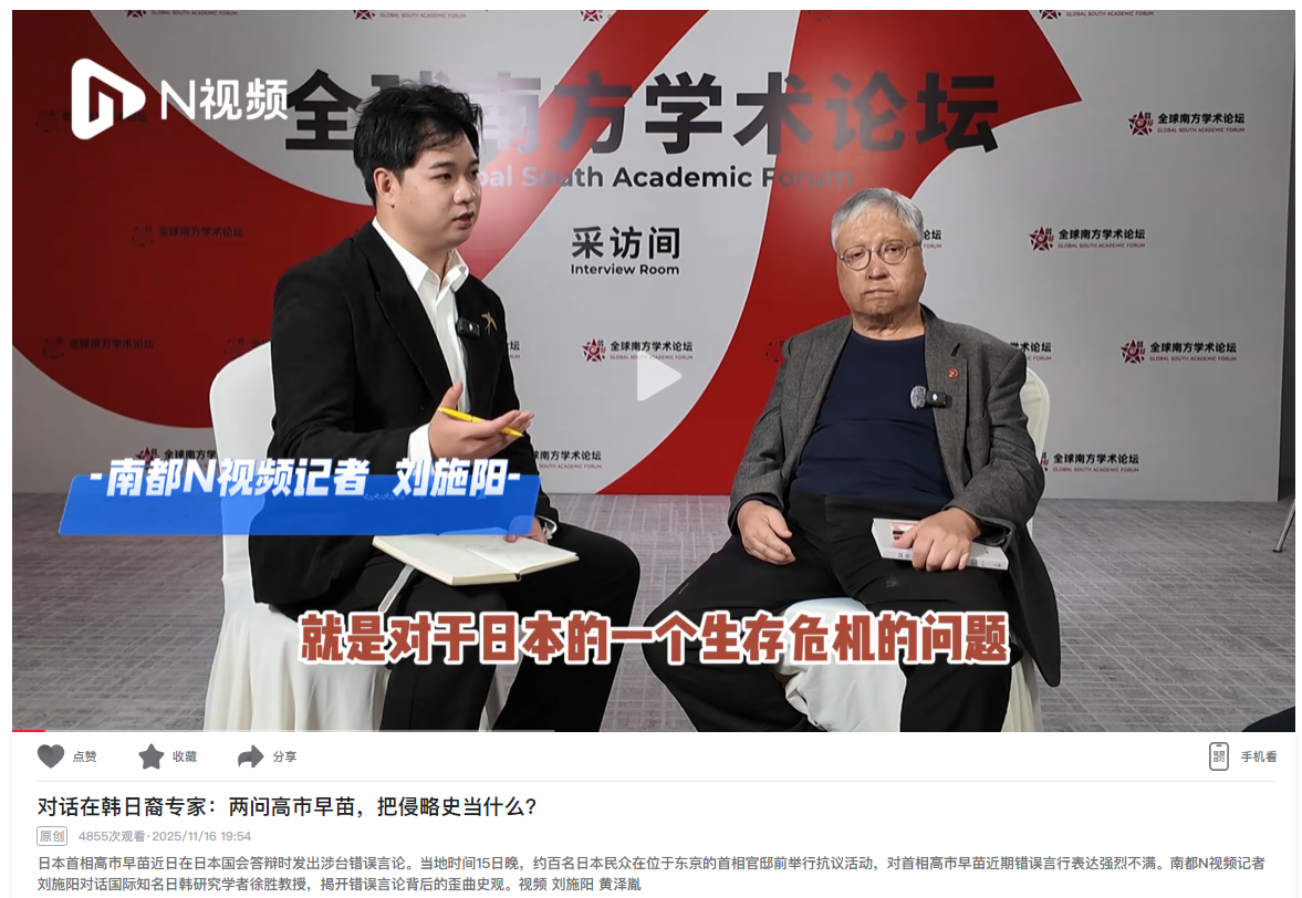 南方都市报 | 对话在韩日裔专家:两问高市早苗,把侵略史当什么?