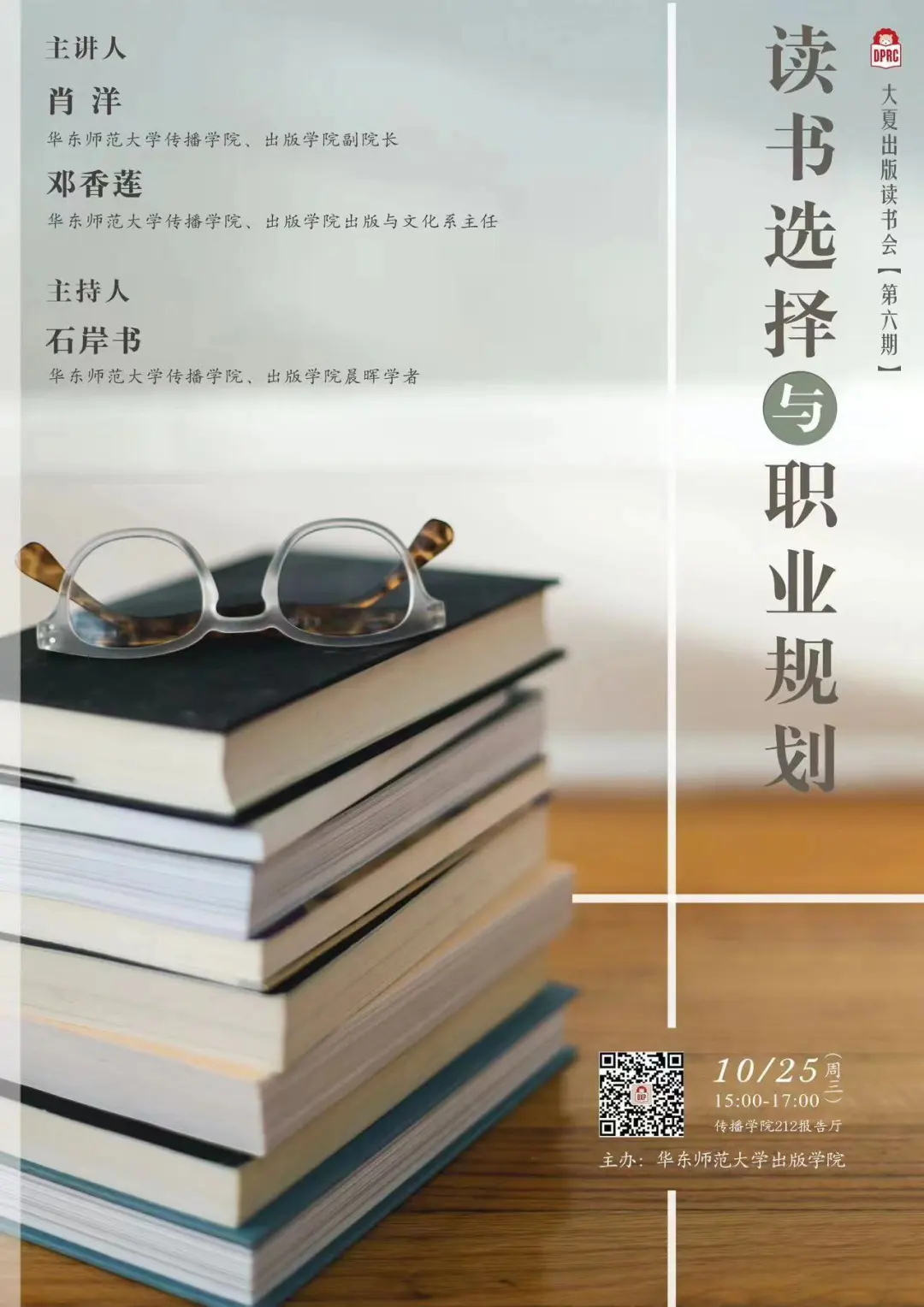 读书会将由肖洋老师和邓香莲老师围绕编辑出版专业学子在日常学习生活中如何选择图书,如何进行职业规划等话题,与同学们进行交流与讨论。