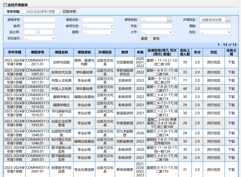 A1:编辑、出版、校对、设计、可以在数据库查询学院开设的课程。