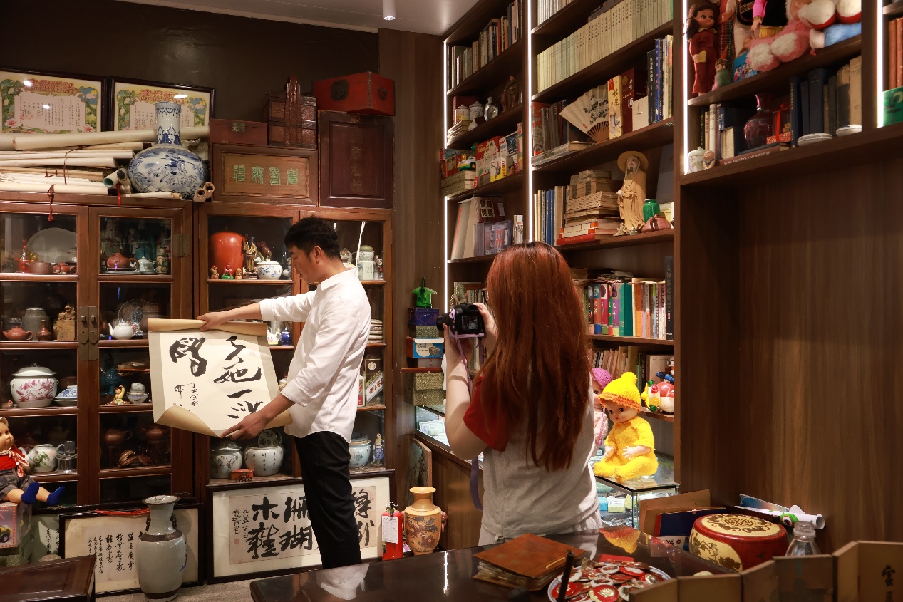 采访结束后,我们在店外拍摄一些空镜,天渐渐放晴,仙霞路的车水马龙又喧闹起来。郑先生小心翼翼地整理着刚才的藏品,动作里满是珍视,在这座日新月异的城市里,像个守着时光的人 —— 当所有人都在追赶未来时,总有人愿意停下脚步,把那些快要被遗忘的昨天,好好留在这小小的店里,让城市的记忆,有了一处可以安放的角落。