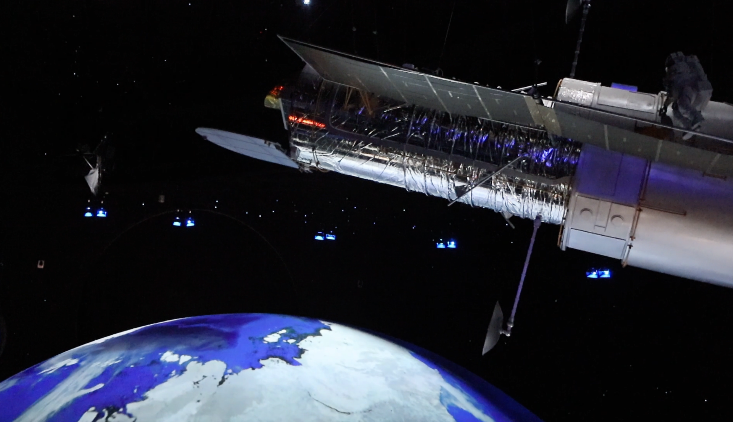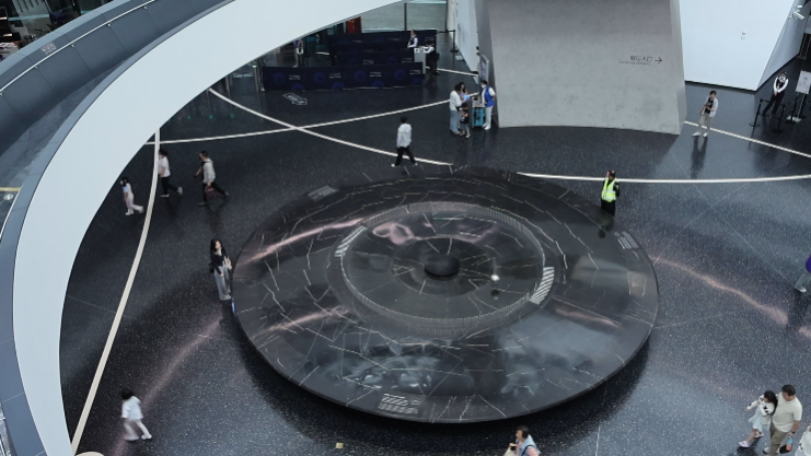 走进展区,首先映入眼帘的是“傅科摆”装置,这件大型实验仪器用优雅的摆动轨迹直观地演示着地球自转。穿过傅科摆,就是“家园”展区。一颗巨型的地球模型静静悬挂于空间中心,八台激光投影仪同步投射出高清动态影像,使观众仿佛置身外太空,从宇宙视角重新审视这颗蓝色星球。展区通过大量可视化信息展现地球的构造、地理变化、气候系统及其在太阳系中的位置与运行轨道,让“我们从哪里来”这个宏大命题变得具体而生动。