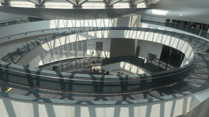 总建筑面积达5.86万平方米的天文馆,由国际知名建筑事务所Ennead设计,内部由旋转坡道贯穿三层,模拟星系结构。其中心一座倒挂的透明穹顶不仅为室内引光,也象征着人类仰望星空的初心——这一切都使建筑本身成为引导观众理解宇宙秩序的第一展项。