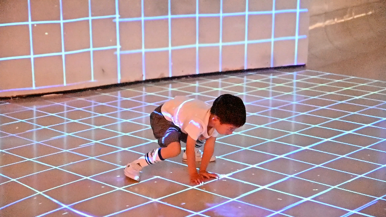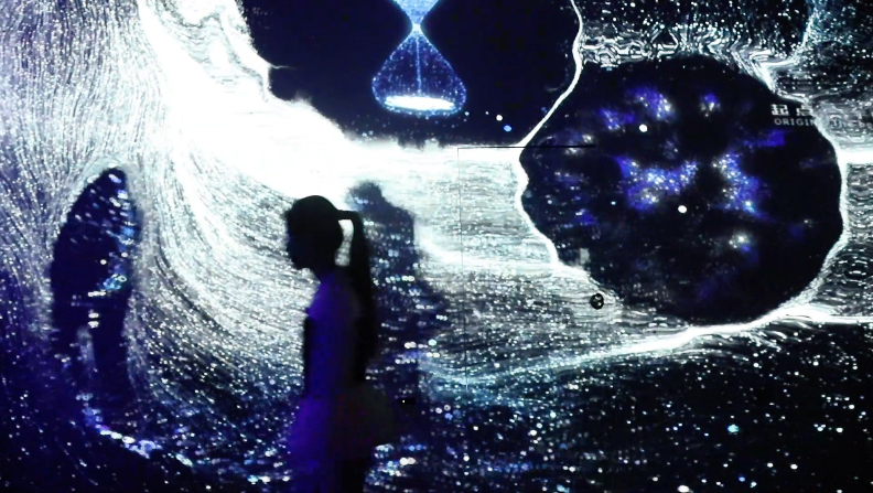穿过“星际穿越长廊”,观众步入“宇宙”展区。长廊中,灯光与影像交错,星云、黑洞、星系缓缓在墙面流动,而观众的影子也通过红外感应投射其上,仿佛与宇宙同频共舞。“宇宙”展区通过丰富的模型、交互影像与模拟实验,让抽象的天文定律和公式“活”了起来——从引力波到暗物质,从星体演化到银河系结构,观众得以在沉浸体验中逐步理解“我们身处何方”。